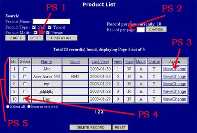 PS 4 : 移除產品,請選取此格,然後按 "Delete Record"