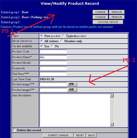 PS 2 : 您可以在此更改產品資料,更改後按 "SUBMIT CHANGE" 遞交